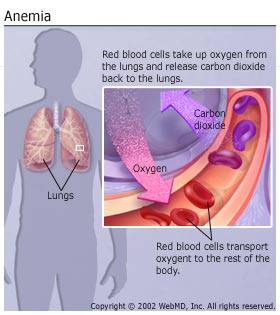 Anemia may be defined as a condition in which there is a decrease in the quantity of haemoglobin or in the number of red cells. Anemia is among the most common ailments affecting human beings. Nearly half the blood flowing in our veins and arteries consists of red blood cells which carry oxygen to the tissues. Approximately one trillion or 100 million new blood cells are formed daily in the bone marrow. The raw materials required in the production of these cells are iron, proteins, and vitamins, especially folic acid and B12. Of these, iron and proteins are essential in building up the red coloring matter called haemoglobin. A red cell has a lifespan of approximately one hundred and twenty days and is then destroyed and replaced. Each person should have about 15 gm of haemoglobin per 100 ml of blood, and a blood count of approximately five million red cells per millimetre of blood. Symptoms of AnaemiaWeakness, Fatigue, Lack of Energy and DizzinessThe patient usually complains of weakness, fatigue, lack of energy and dizziness. Other symptoms include a haggard look, premature wrinkles, dull and tired looking eyes, poor memory, shortness of breath on exertion, headache, slow healing of wounds, and palpitations. The skin and mucous membranes look pale. Iron deficiency anemia symptoms and treatment can vary from case to case but bruising and hair loss are extremely common anemia related problems. This is because the inadequate supply of oxygen to the cells of the skin results in slower healing and so bruising is one of the side effects of anemia. In the same manner, the roots of the hair receive less oxygen as well and so they are considerably weakened. Topical applications and other such methods of hair loss treatment may not have any effect and it will be necessary to treat the root cause of the problem- the anemia, in order to prevent hair fall. Anemia often causes the skin on the extremities to remain cold and clammy. The skin on the palms and soles of a person suffering from anemia will generally appear pale. Symptoms of anemia in women may be more severe as compared to men. This is due to the regular loss of blood during menstruation which aggravates the condition. Anemia in women, especially during pregnancy, is a very common problem and immediate dietary changes would help treat this condition. Signs and symptoms of anemia during pregnancy include breathlessness and giddiness. Keep in mind that the symptoms of anemia in women are very different from those seen in infants and children.
